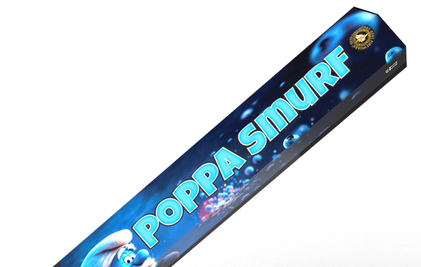 Poppa Smurf is a Category F2 firework. Maintain a minimum safety distance of 8 metres and ensure the Roman candle is secured firmly in a suitable support or firing tube before ignition.